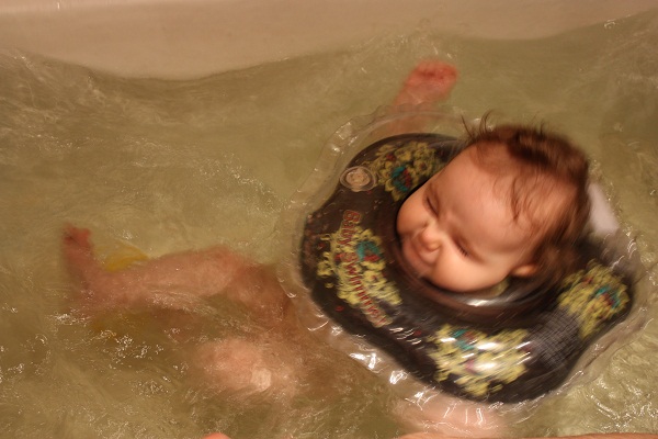 "К заплыву все готово!", - сообщает папа и фотографирует уже немного уставшую к концу дня маму с дочкой.
