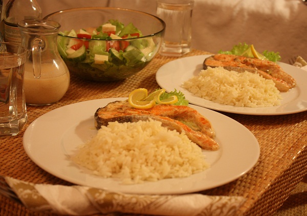 Скоро придет муж, я спешу на кухню. На ужин у нас рыба. Пока стейки готовятся, объясняю своей помощнице, что такое рыба и с чем ее едят. Для наглядности решено было ее нарисовать.
