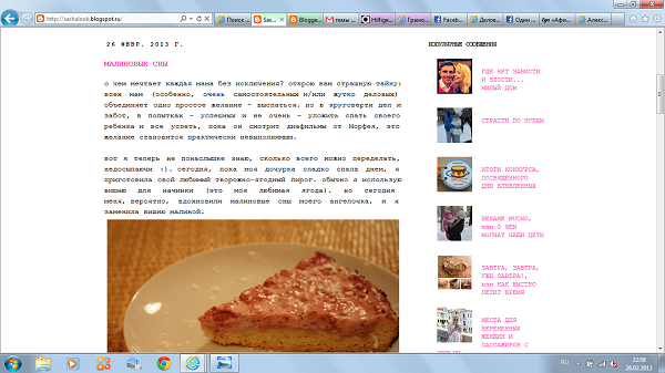 У меня - свободное время. 40 минут-час. Сегодня трачу его на приготовление малиново-творожного пирога, рецепт которого вечером выложу в свой блог.