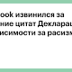 РБК Черноземье | Facebook извинился за удаление цитат Декларации независимости за расизм РБК Черноземье Facebook извинился за удаленный как разжигающий ненависть пост с цитатами из Декларации независимости США на странице техасской газеты Liberty County Vindicator. Об этом сообщает газета USA Today. Дело касается ежегодной традиции издания публиковать выдержки из ... Facebook забанил Декларацию независимости США за «язык ненависти» Декларация независимости США получила бан от Facebook за расизм. Бот был против свободы человеков Facebook «увидел» в Декларации независимости США проявления «языка ненависти» |