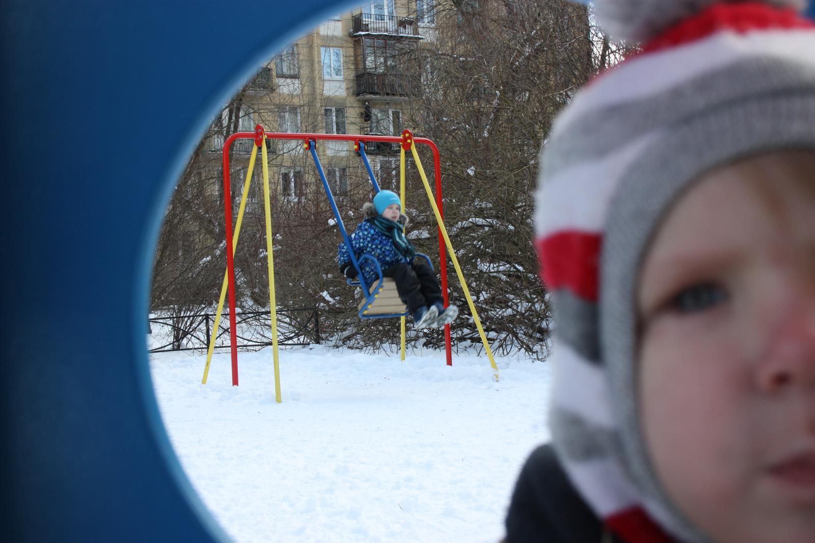 А кто это там в отверстии? А это Сергей Васильевич на качелии восседает.