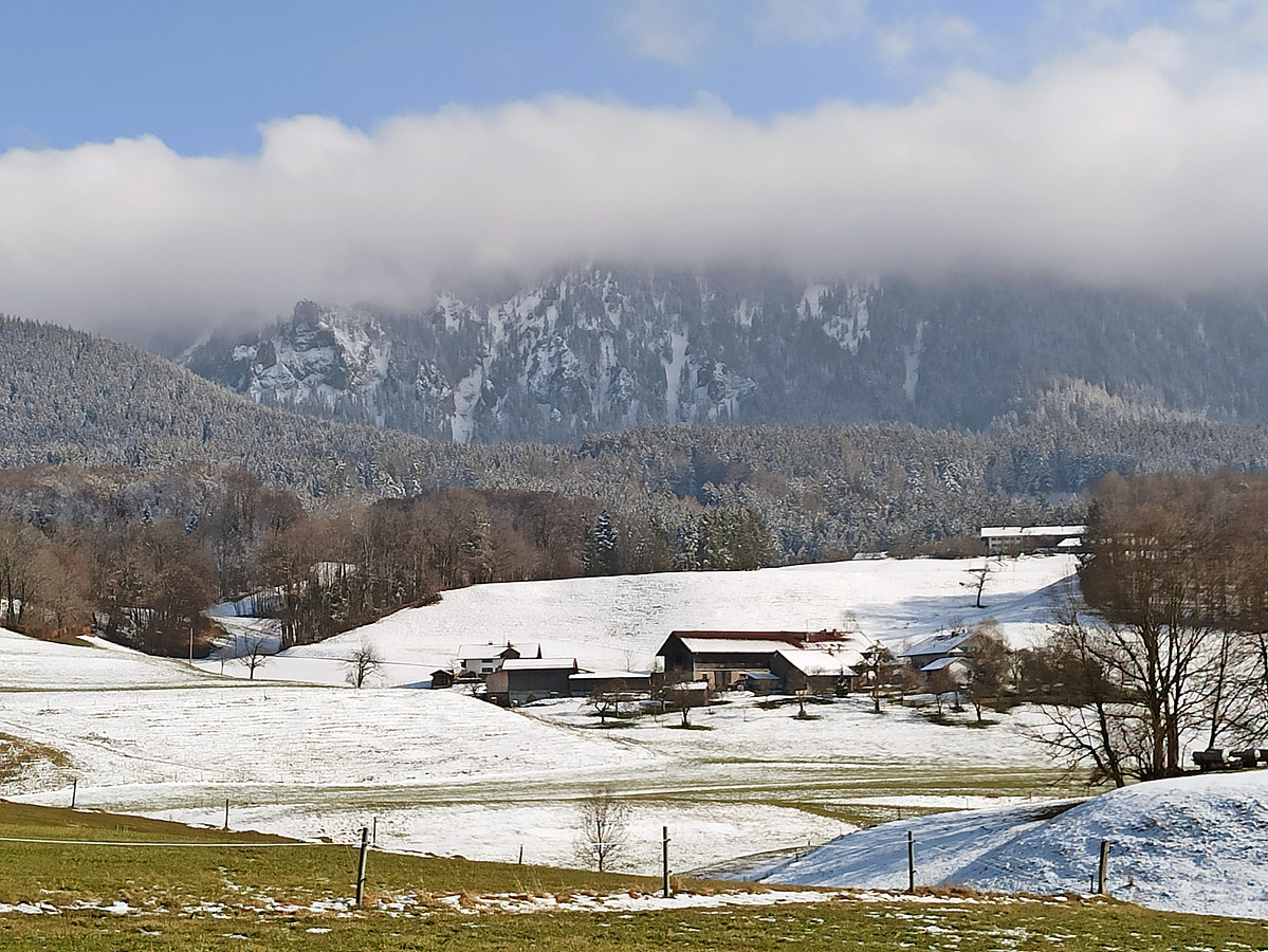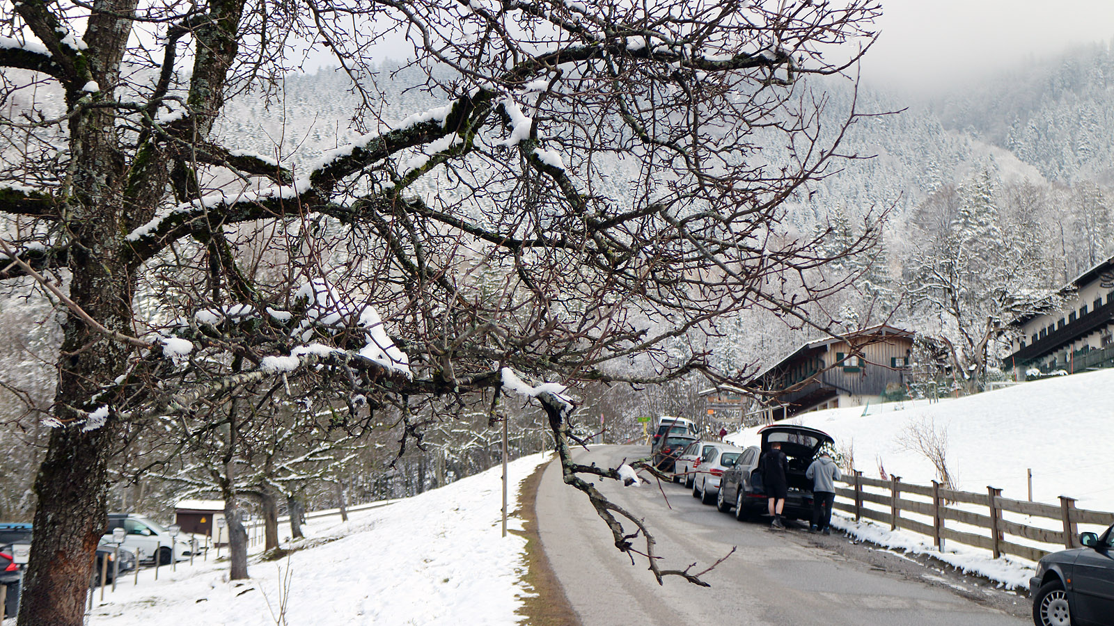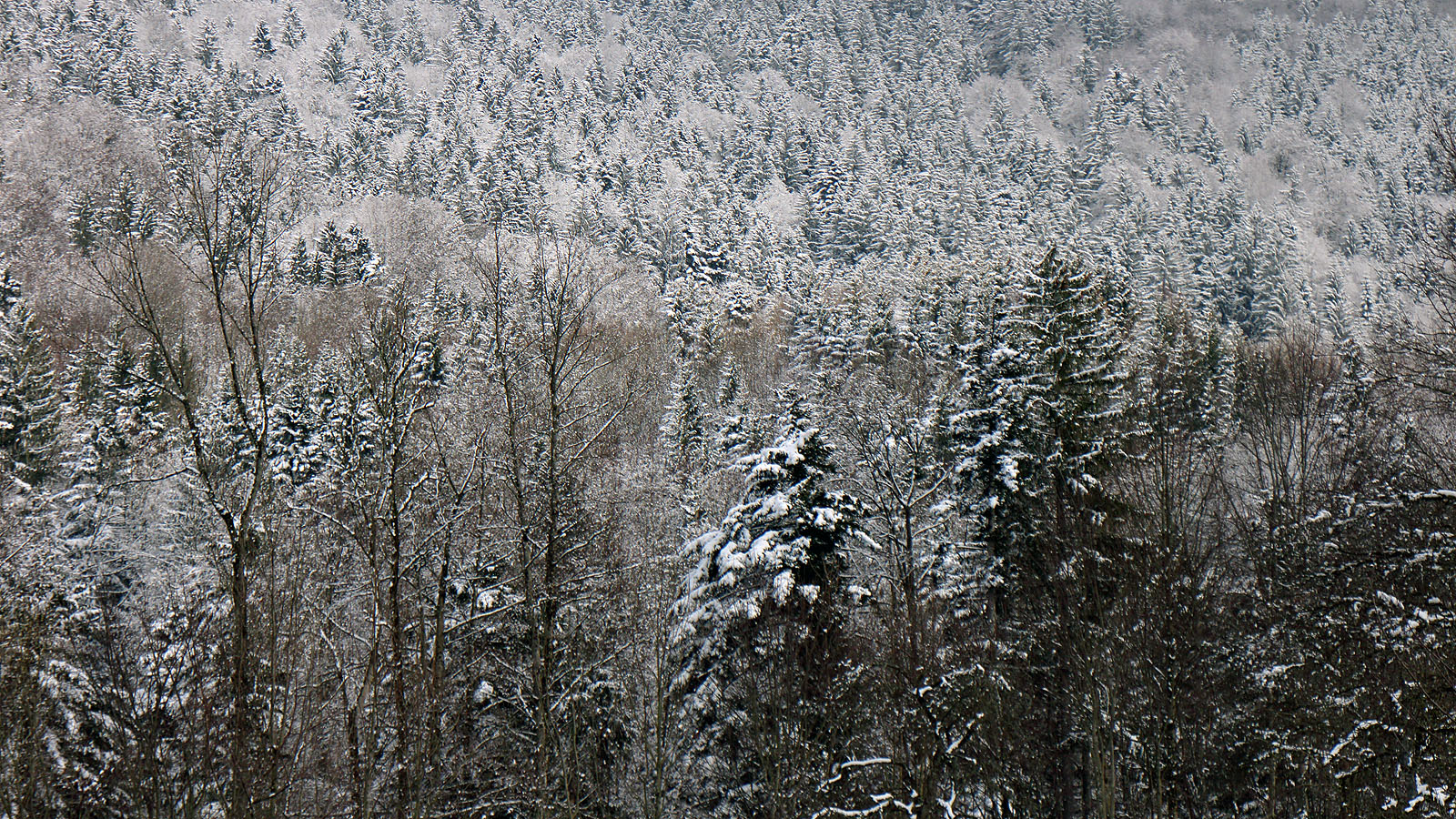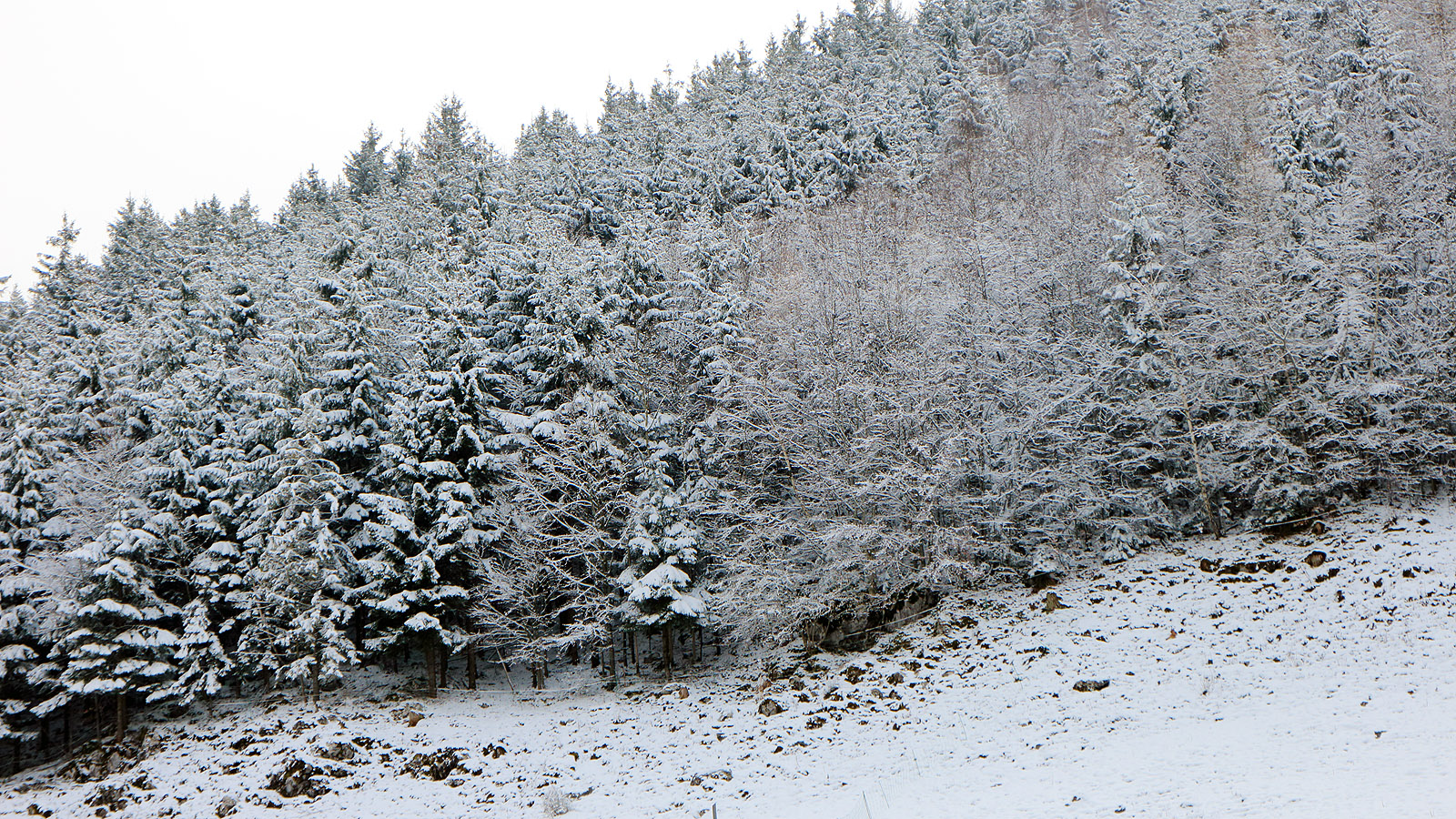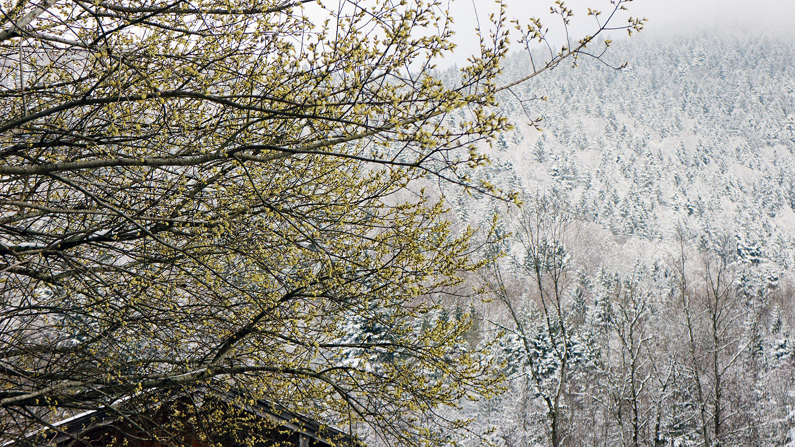 Вчера случайно заехали в зиму. Волна холодного воздуха, прошедшая в пятницу, принесла снег. На равнине он мгновенно растаял, а горы присыпало словно сахарной пудрой. Снег был пушистый, почти невесомый, лежать ему недолго.